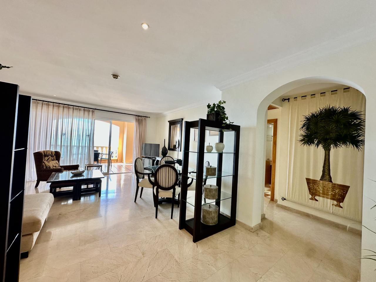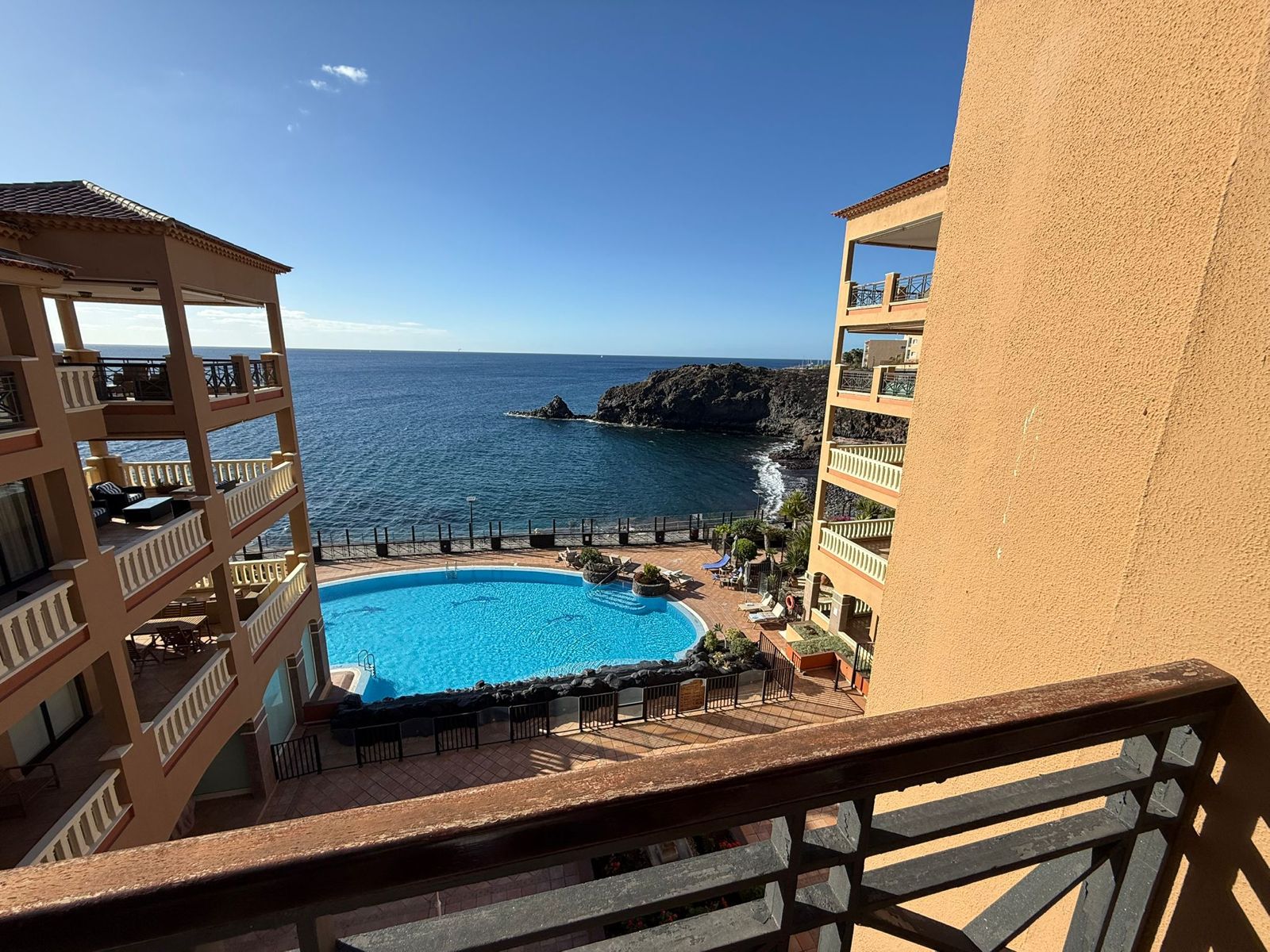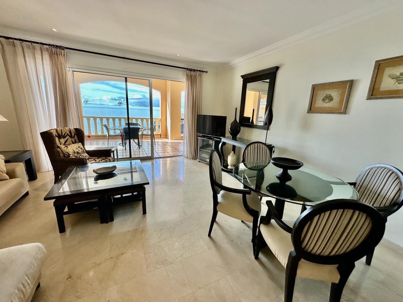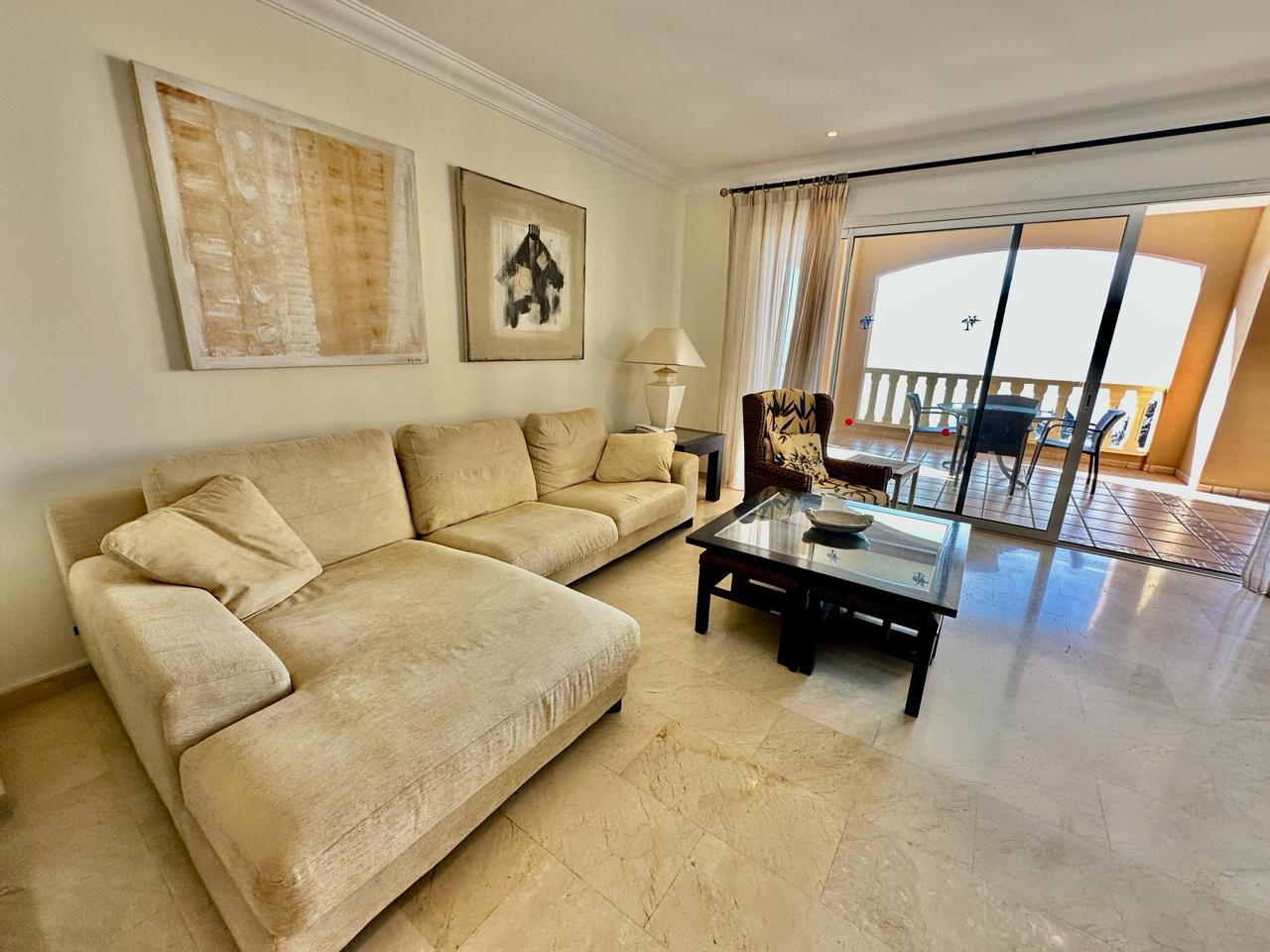 EL NAUTICO - GOLF DEL SUR. Magnificent fourth-floor apartment with spectacular sea views. It comprises two double bedrooms with fitted wardrobes, a master bedroom with en-suite bathroom, a fitted kitchen and a living room. All rooms have access to a 35 m² terrace with fantastic sea views. Sold furnished. Includes underground parking space and storage room. The complex has a reception, heated swimming pool and gym. Solar panels and upgraded Wi-Fi.