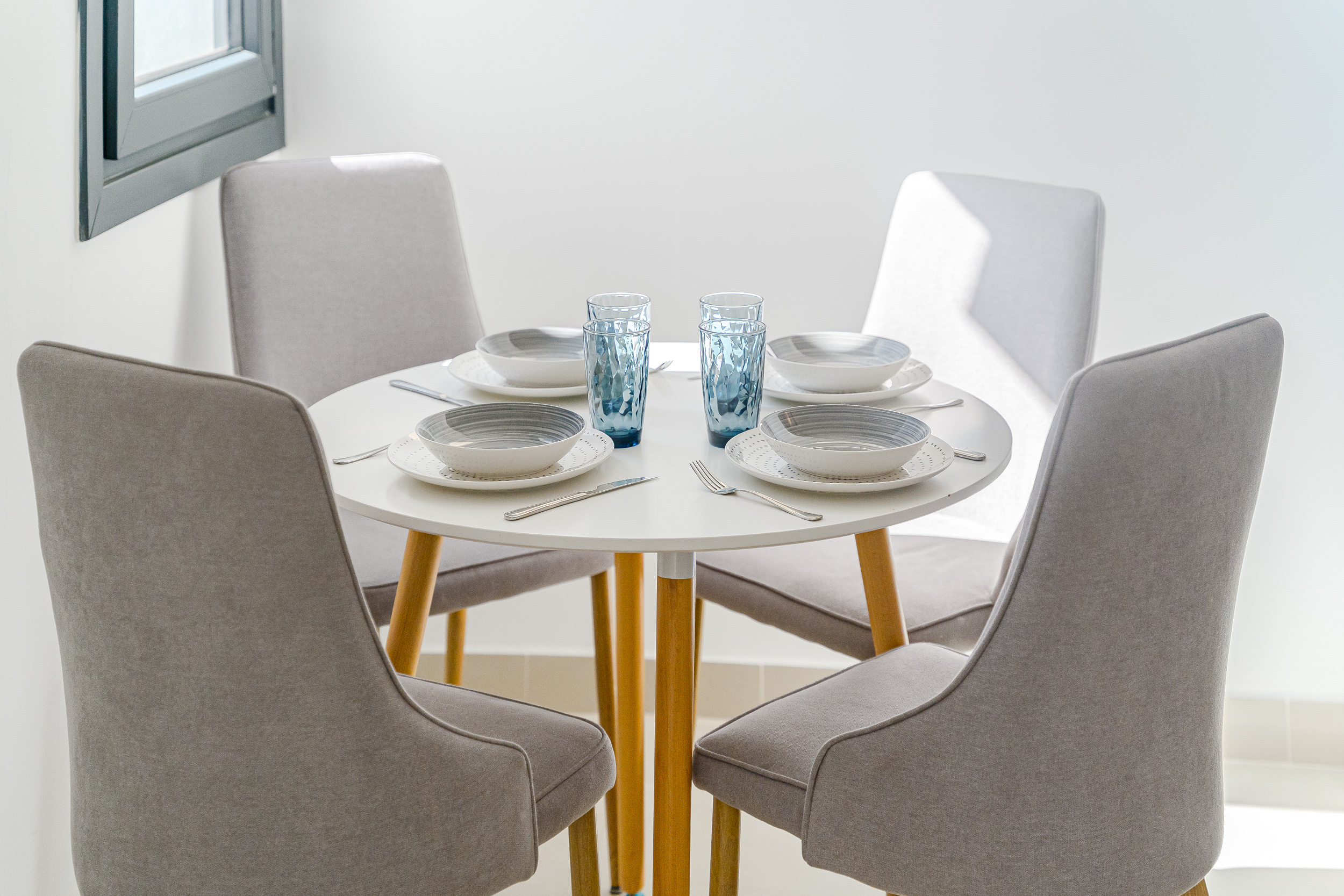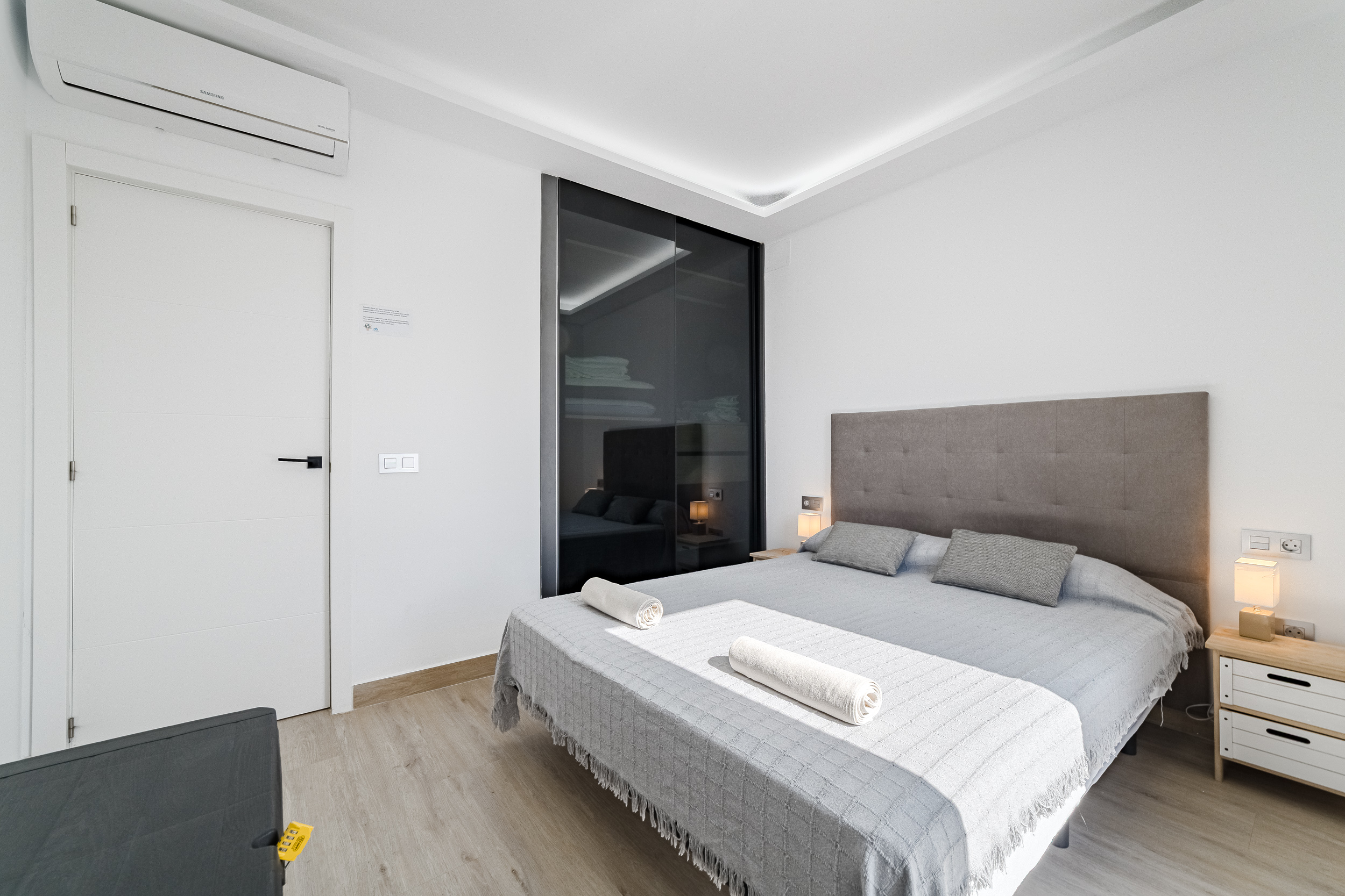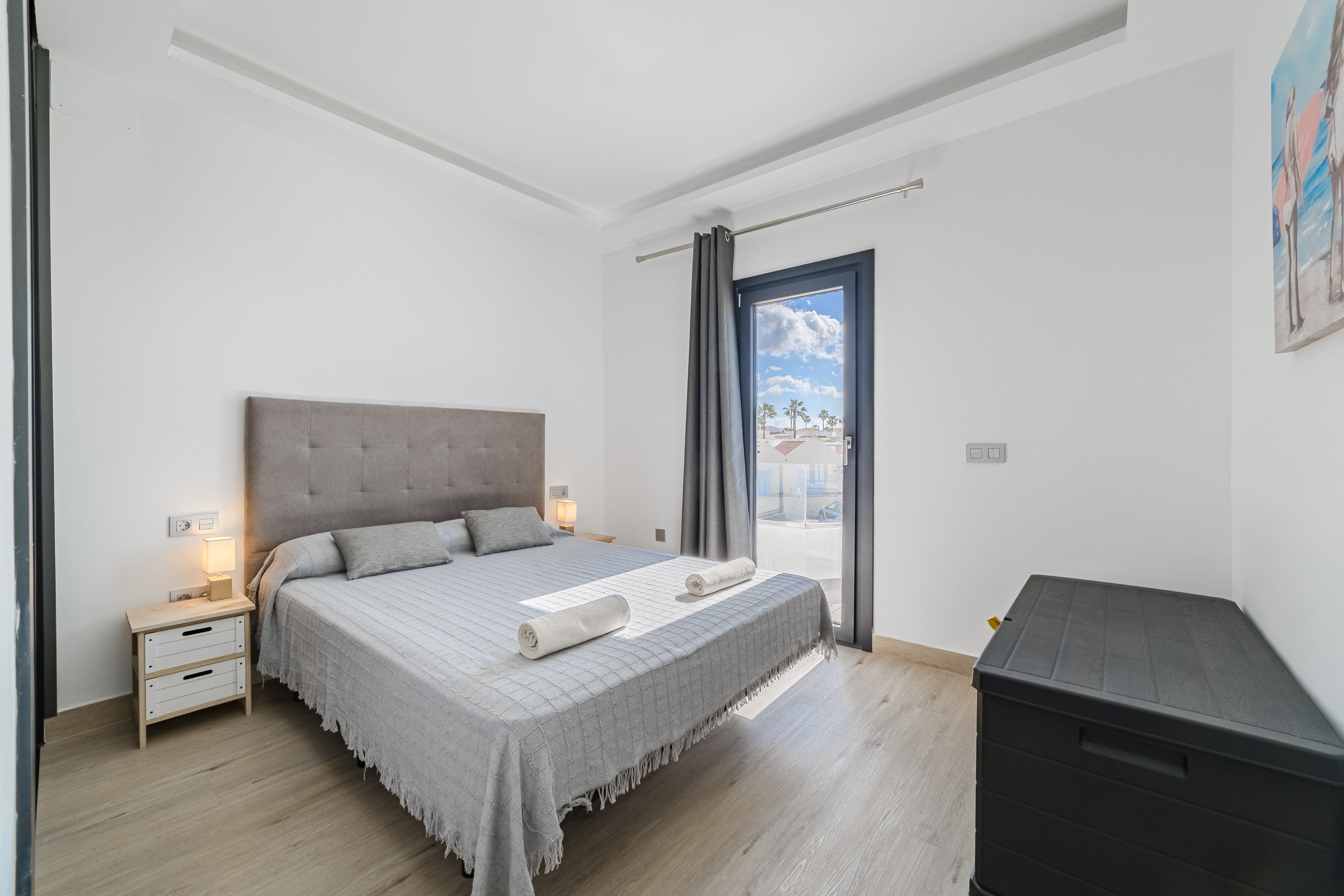 Upstairs, you will find two double bedrooms with fitted wardrobes, each sharing their own balcony overlooking the communal pool. The full bathroom is finished to a very high standard. With 126m² built, this property offers excellent value for money as an investment in a growing area close to San Miguel beach and marina.